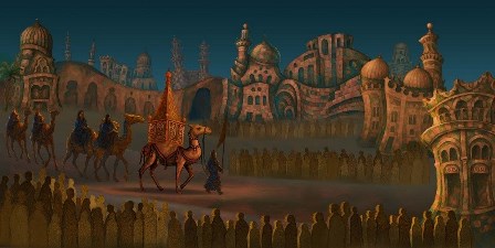 فى مدينة حالمة ذات قباب ذهبية وأبراج، تبدأ الهندسة المعمارية بالتلاشي والصعود إلى النور، كما لو كانت تستيقظ من الأرض إلى الجنة.